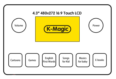 主要功能: 1. 内置卡通视频、教育游戏、英文单词、幼儿音乐等。 2. 适合0-6岁小朋友学习使用。 3. 支持四种语言,普通话、广东话、英文、日文。 4. 4.3寸真彩屏幕,支持触摸操作。 5. 1节18650电池供电,最长使用时间多达6小时。